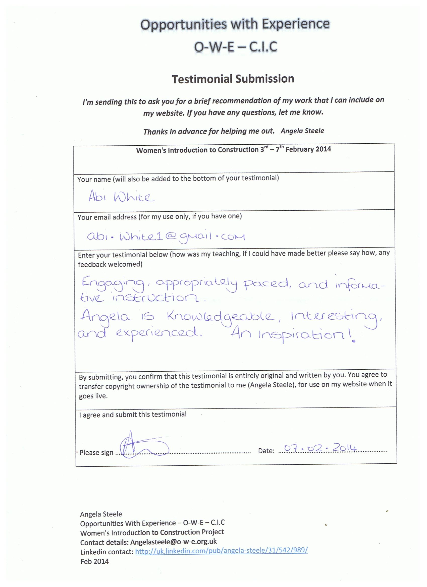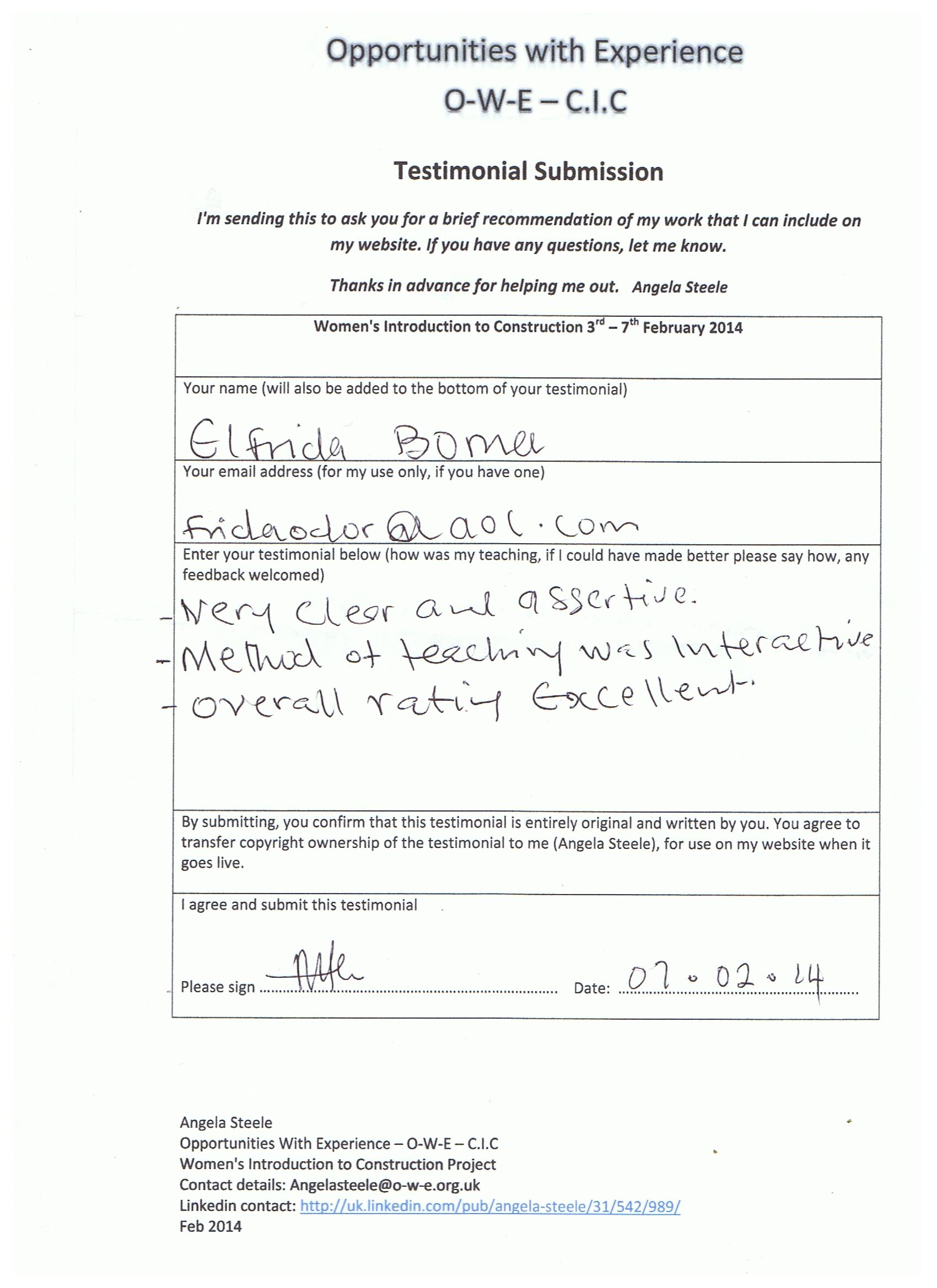 “Enjoyed the course, Angela is so funny and hard working. She gave us her time equally. Very good trainer.” Lynda Davis