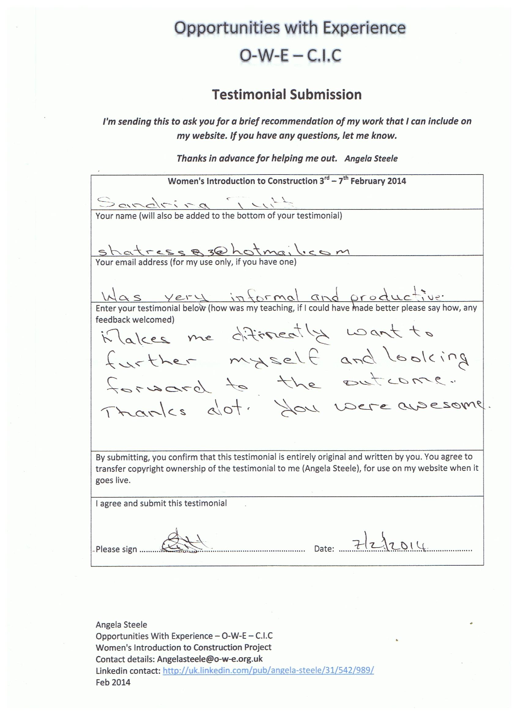 “I really enjoyed the course; it was well presented and very informative. The course tutor also opened my eyes as to all the opportunities that are available for women to work in construction.” Yetunde Akinolie