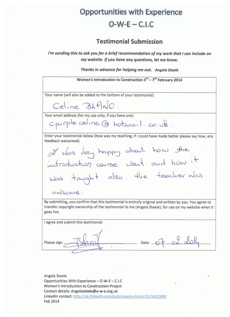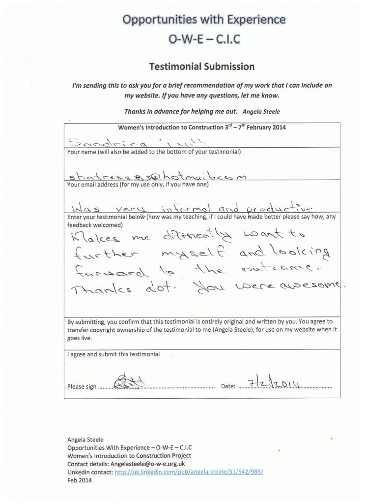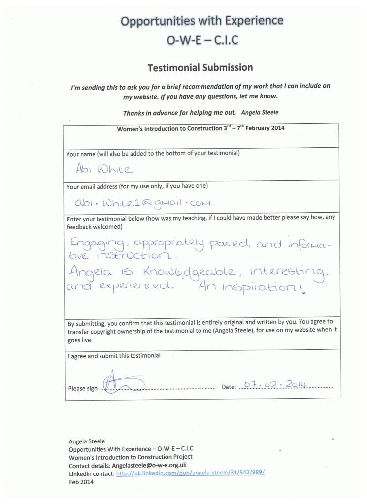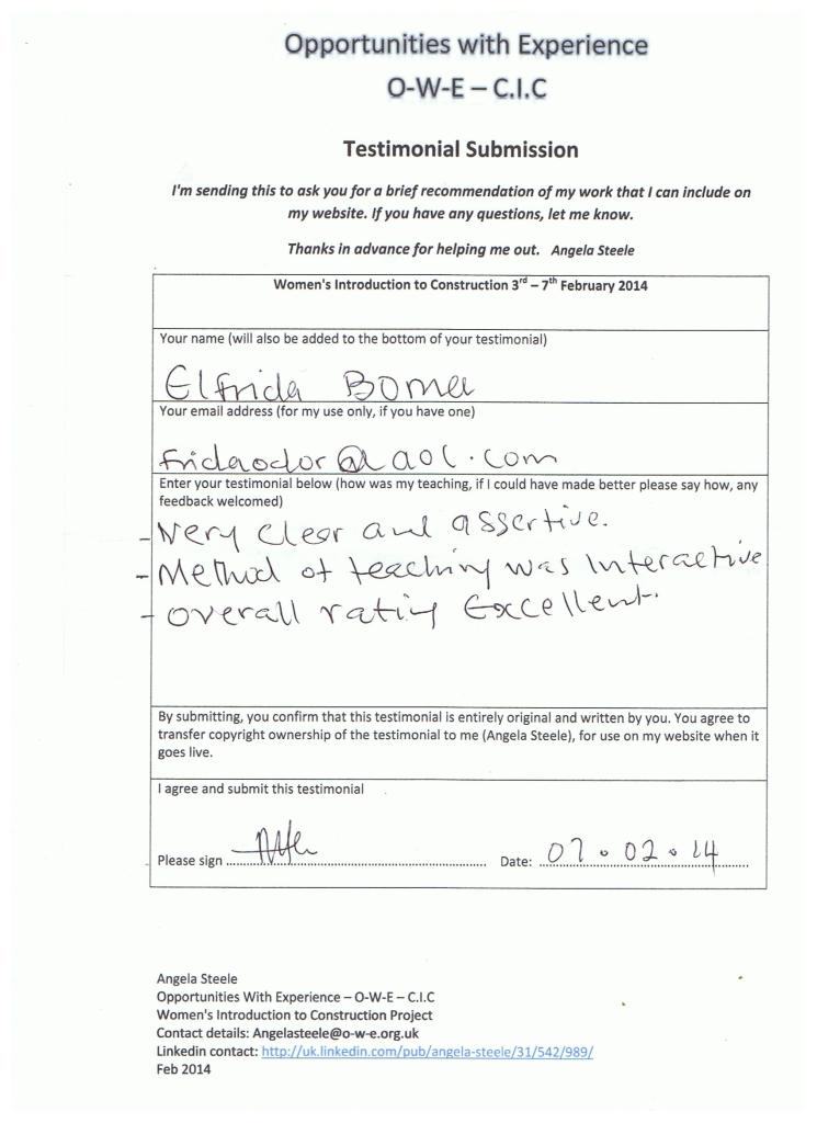 “I really enjoyed the course; it was well presented and very informative. The course tutor also opened my eyes as to all the opportunities that are available for women to work in construction.” Yetunde Akinolie